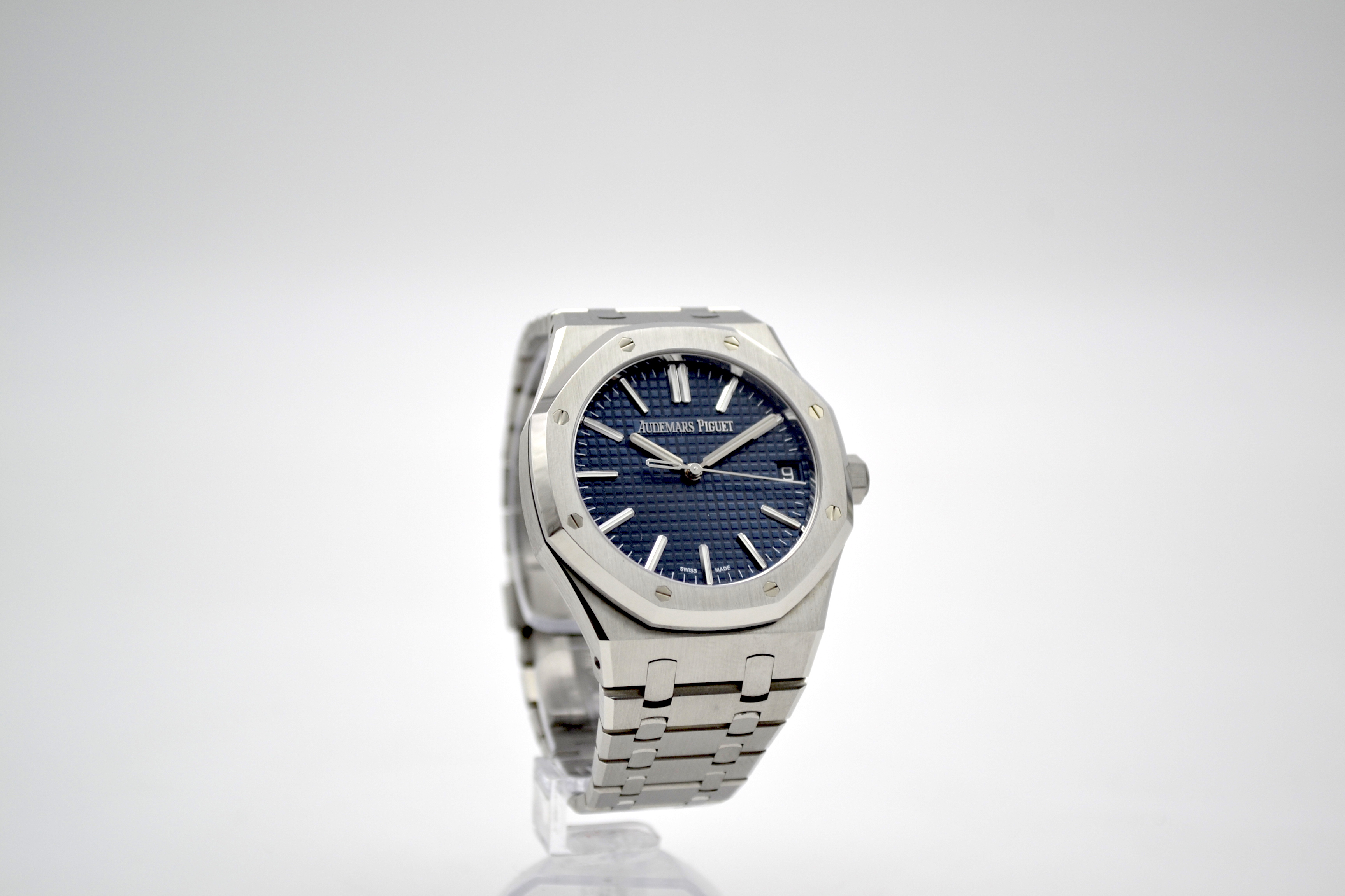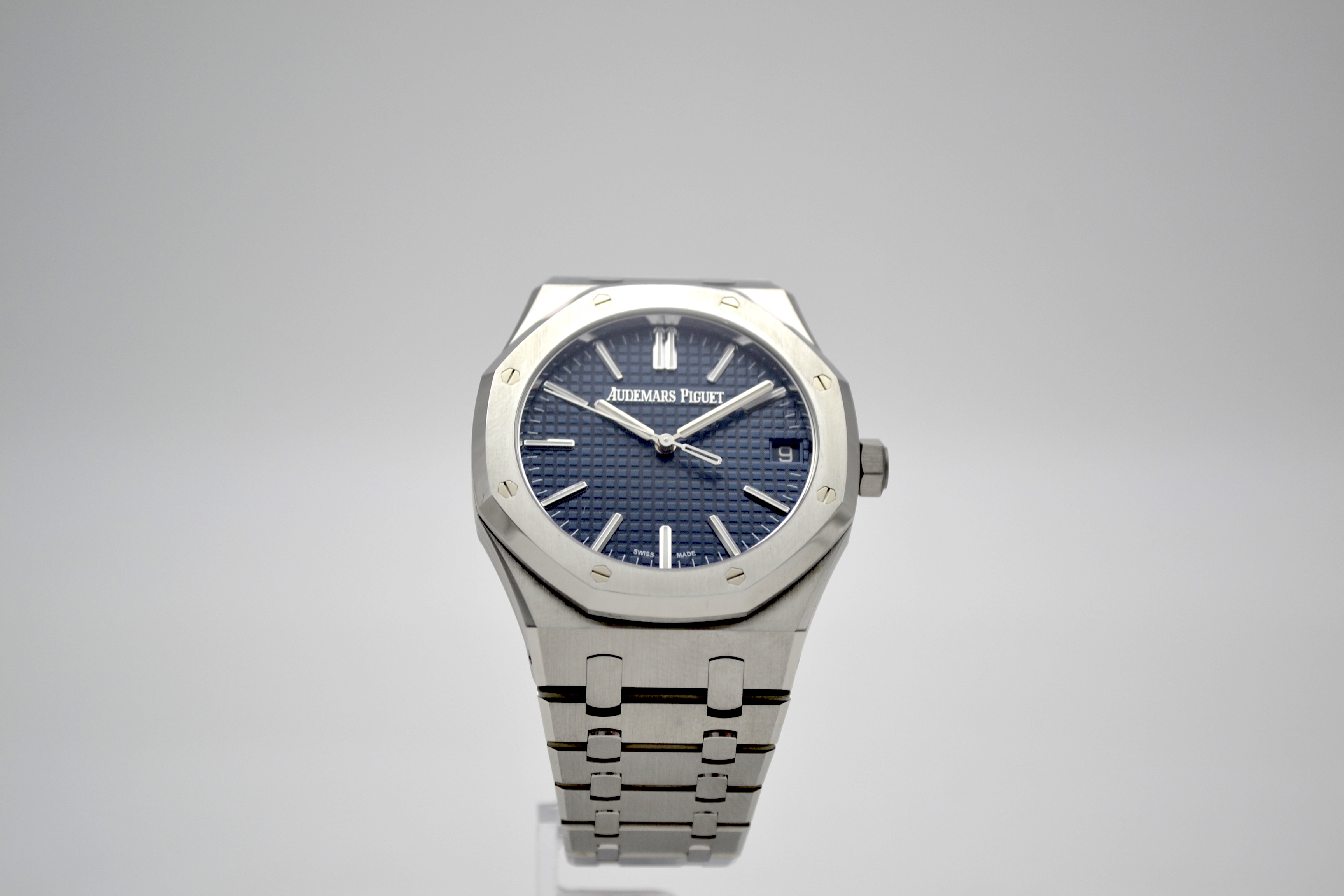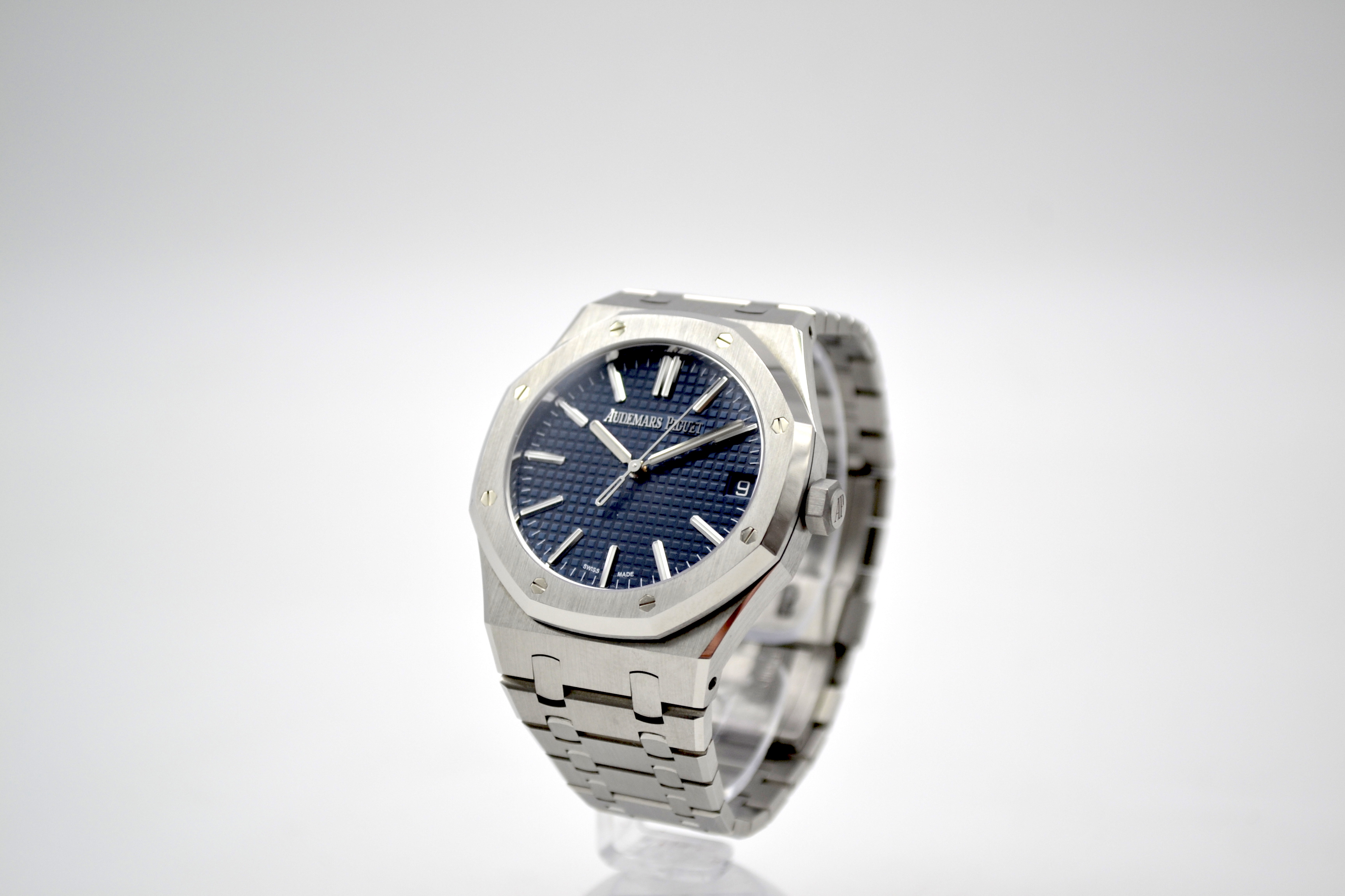 Audemars Piguet Royal Oak 50th Anniversary Blue Dial 41mm - это роскошные и элегантные часы, выпущенные в честь 50-летия легендарной коллекции Royal Oak от швейцарского часового бренда Audemars Piguet. Эта модель сочетает в себе классический дизайн Royal Oak с современными технологиями и высочайшим качеством исполнения. Часы имеют корпус из нержавеющей стали диаметром 41 мм, который идеально подходит для мужчин. Уникальный дизайн корпуса с восьмигранными винтами на Lunette octogonale, характерный для коллекции Royal Oak, делает эту модель неповторимой и узнаваемой. Циферблат в глубоком синем цвете солнечного оттенка украшен гильошированным узором "Grande Tapisserie" и выполнен в традиционном стиле Royal Oak. Механизм часов - автоматический, что обеспечивает точность и надежность хода. Сапфировое стекло на циферблате обладает высокой прочностью и защищает от царапин. Часы также имеют водонепроницаемость до 50 метров, что делает их подходящими для повседневного использования. Браслет из нержавеющей стали дополняет образ часов, придавая им элегантность и стиль. Audemars Piguet Royal Oak 50th Anniversary Blue Dial 41mm - это прекрасный выбор для ценителей высокого часового искусства, стильных аксессуаров и уникального дизайна. Эти часы станут не только функциональным аксессуаром, но и ярким элементом вашего образа, подчеркивающим ваш безупречный вкус и роскошный стиль.
