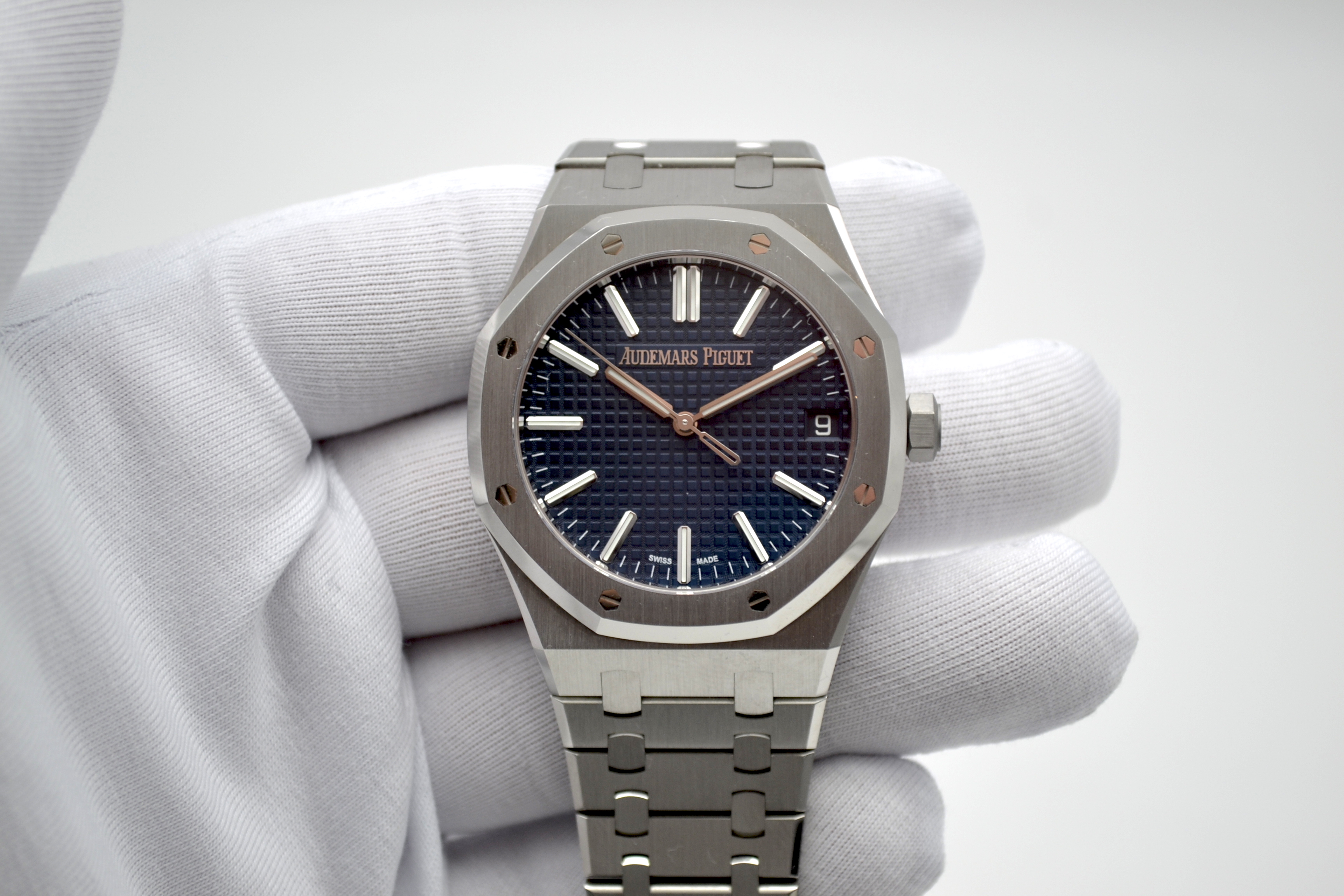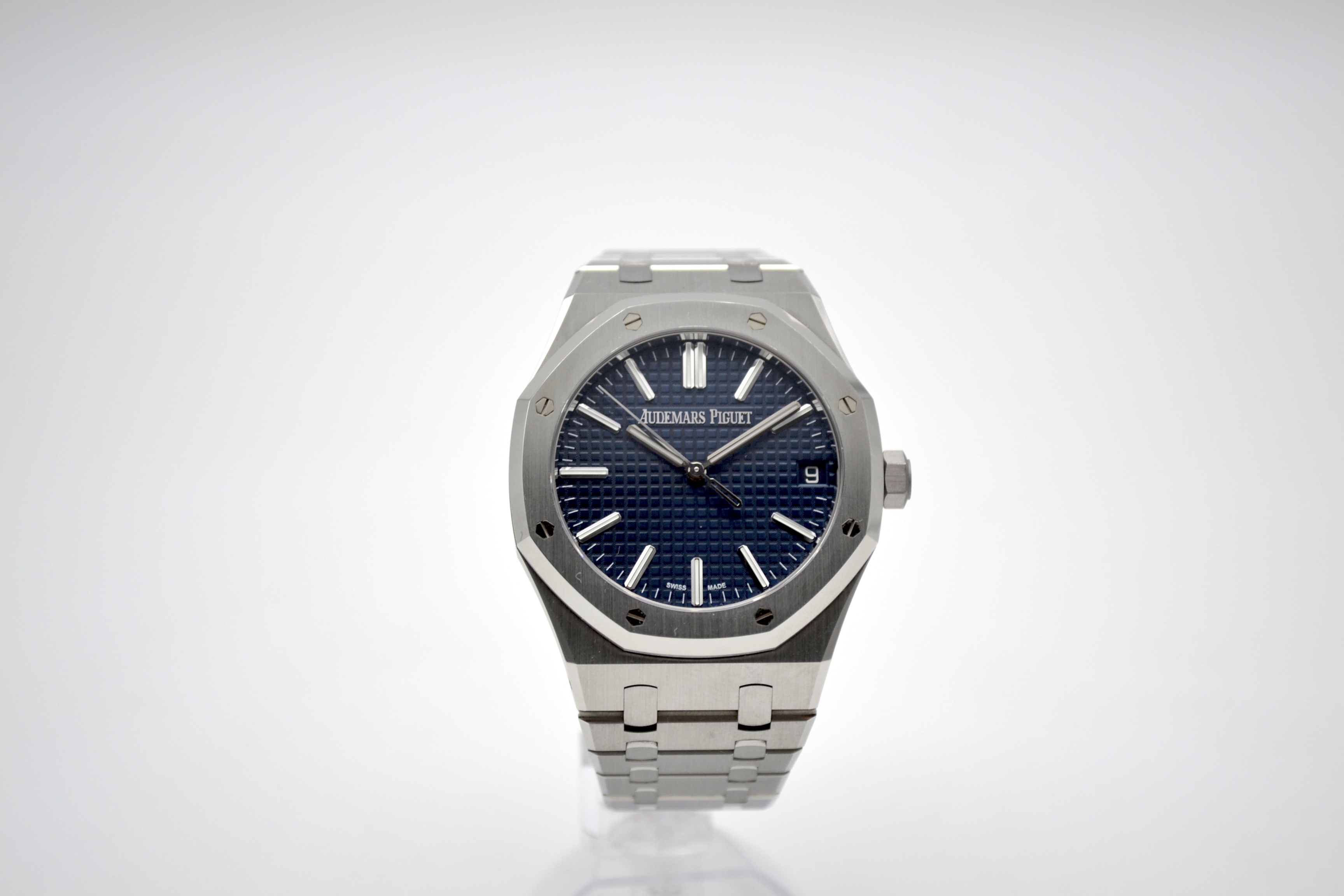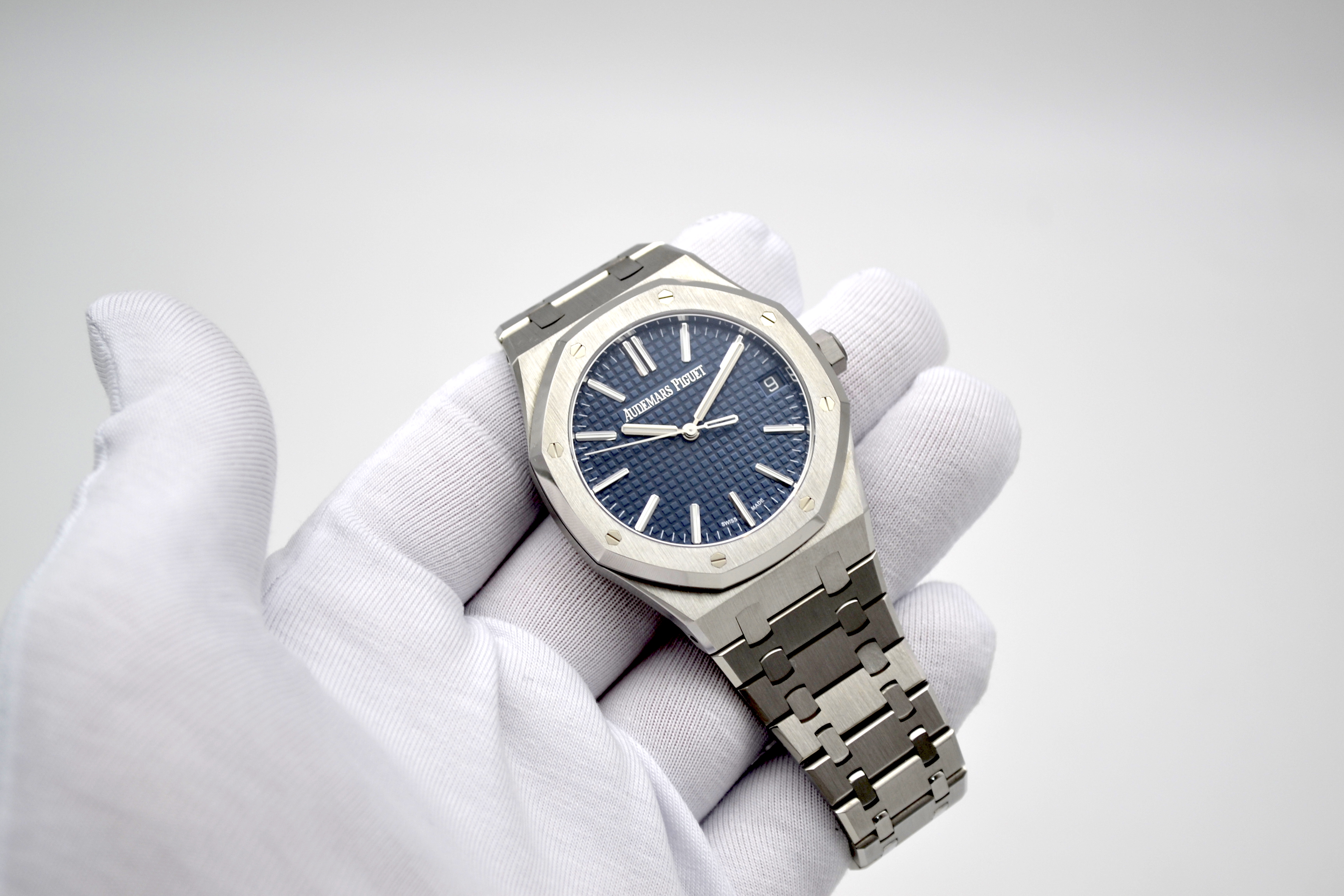 Audemars Piguet Royal Oak 50th Anniversary Blue Dial 41mm - это роскошные и элегантные часы, выпущенные в честь 50-летия легендарной коллекции Royal Oak от швейцарского часового бренда Audemars Piguet. Эта модель сочетает в себе классический дизайн Royal Oak с современными технологиями и высочайшим качеством исполнения. Часы имеют корпус из нержавеющей стали диаметром 41 мм, который идеально подходит для мужчин. Уникальный дизайн корпуса с восьмигранными винтами на Lunette octogonale, характерный для коллекции Royal Oak, делает эту модель неповторимой и узнаваемой. Циферблат в глубоком синем цвете солнечного оттенка украшен гильошированным узором "Grande Tapisserie" и выполнен в традиционном стиле Royal Oak. Механизм часов - автоматический, что обеспечивает точность и надежность хода. Сапфировое стекло на циферблате обладает высокой прочностью и защищает от царапин. Часы также имеют водонепроницаемость до 50 метров, что делает их подходящими для повседневного использования. Браслет из нержавеющей стали дополняет образ часов, придавая им элегантность и стиль. Audemars Piguet Royal Oak 50th Anniversary Blue Dial 41mm - это прекрасный выбор для ценителей высокого часового искусства, стильных аксессуаров и уникального дизайна. Эти часы станут не только функциональным аксессуаром, но и ярким элементом вашего образа, подчеркивающим ваш безупречный вкус и роскошный стиль.