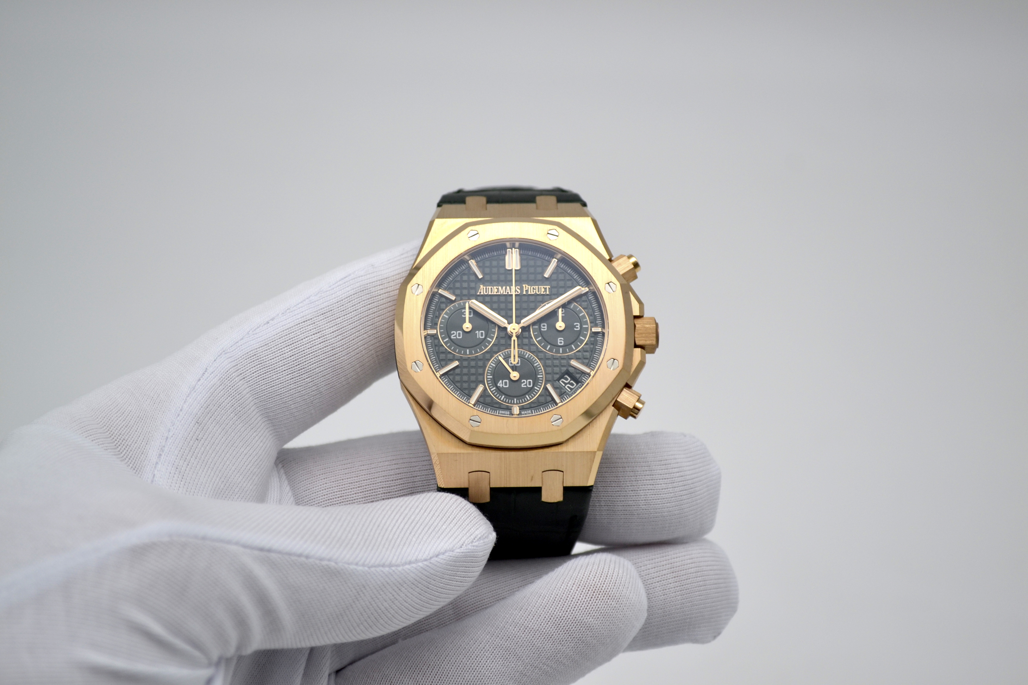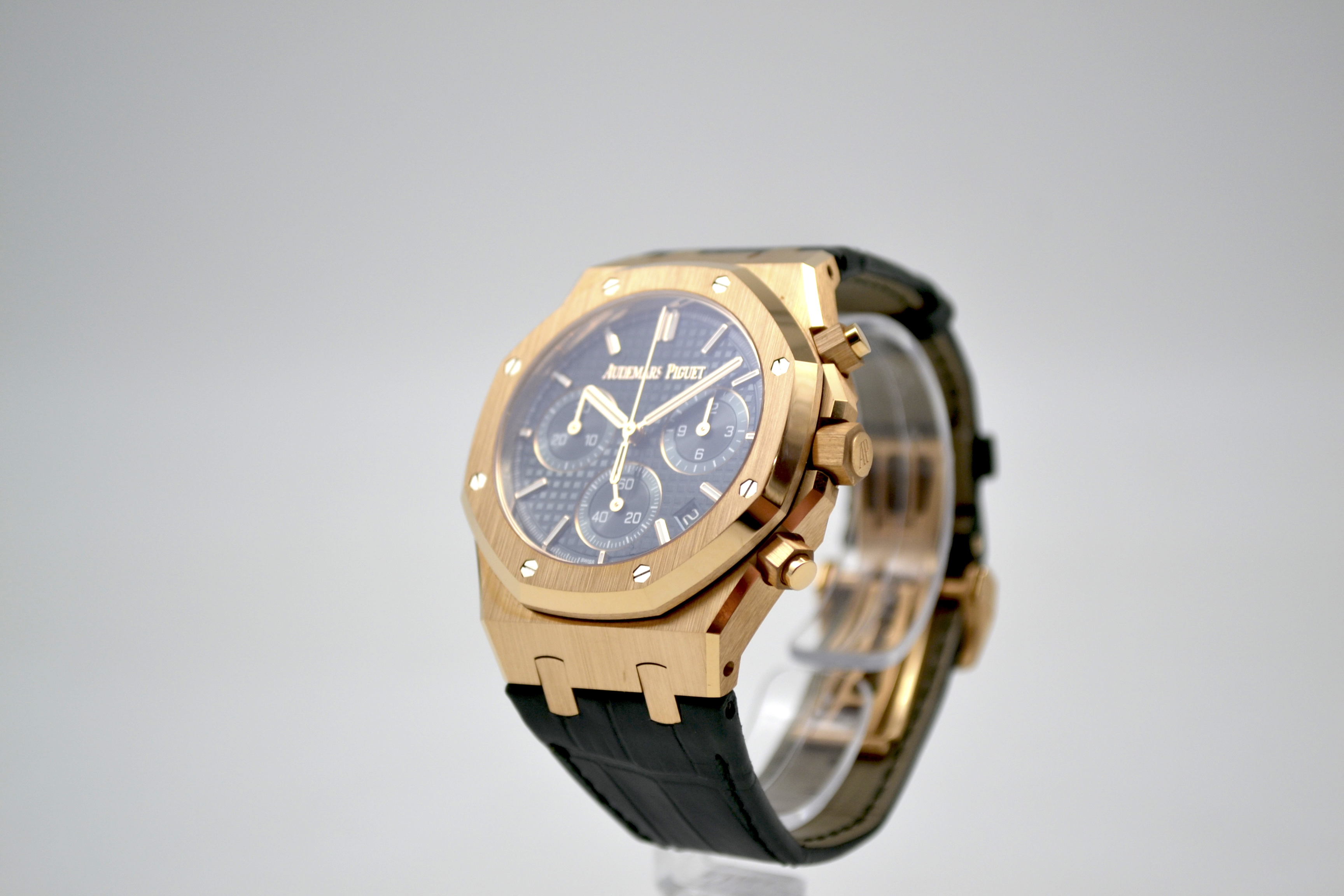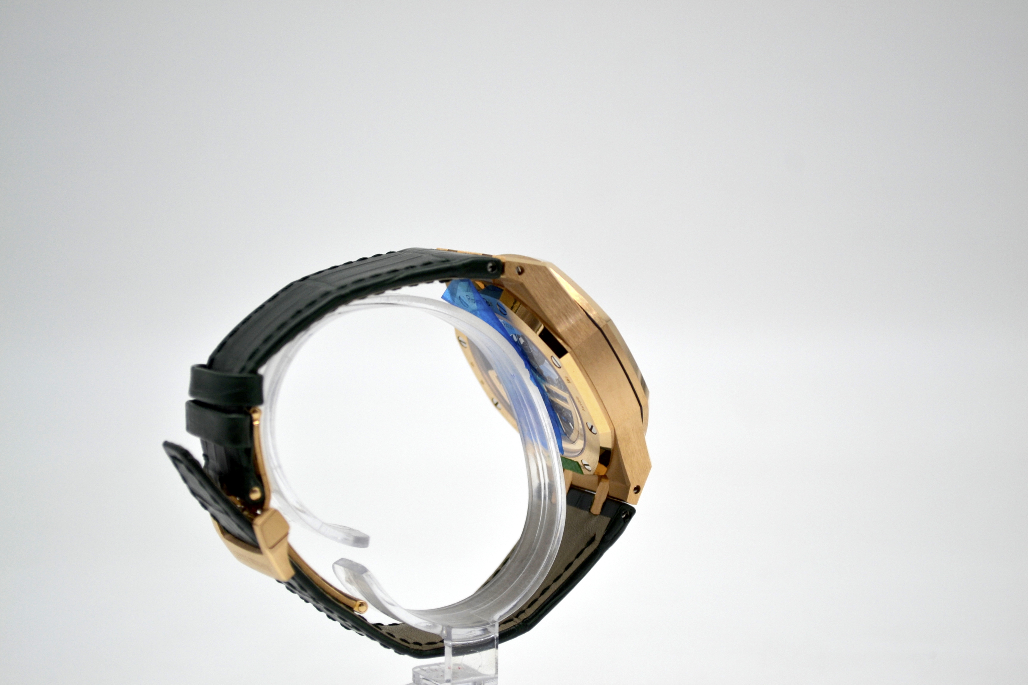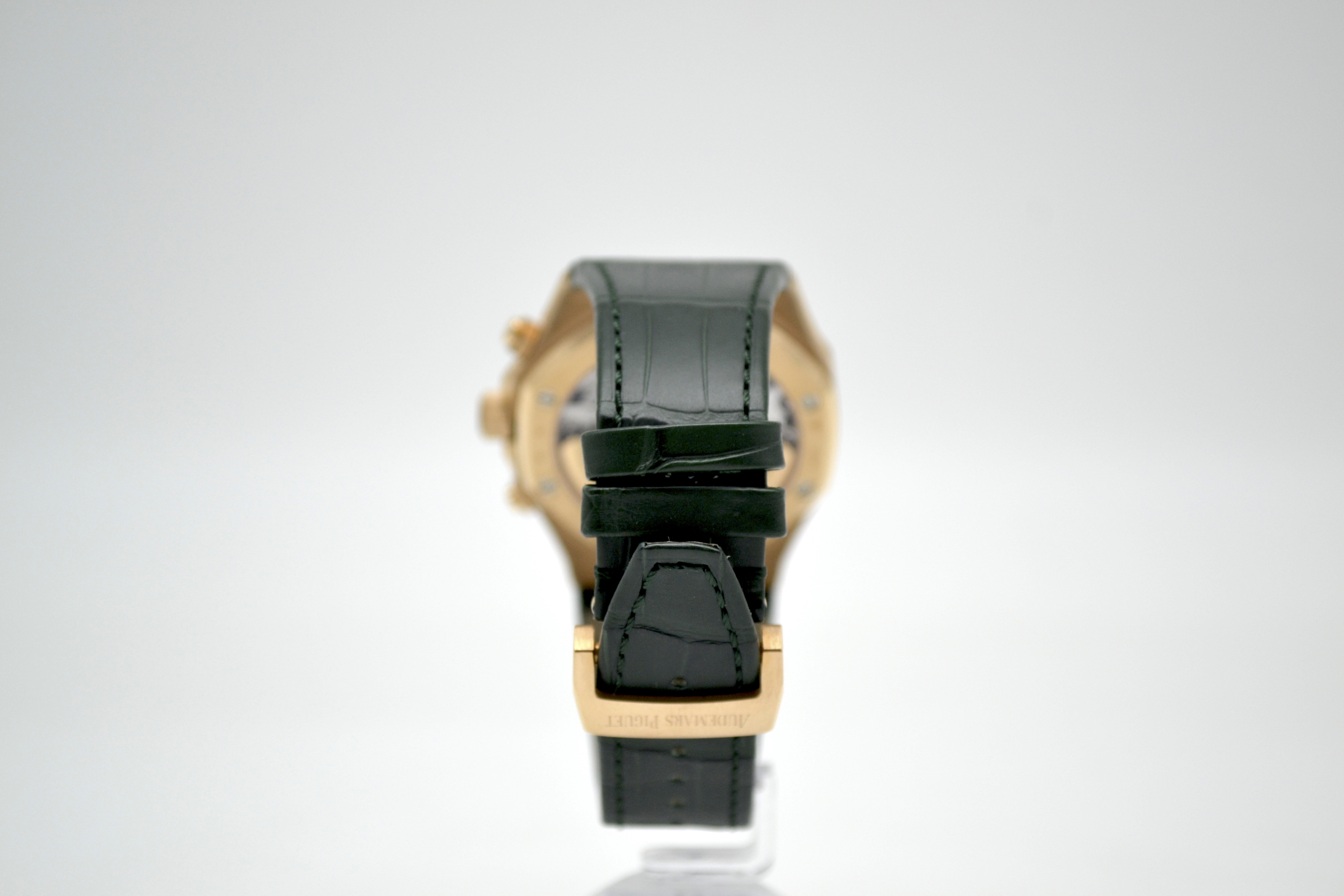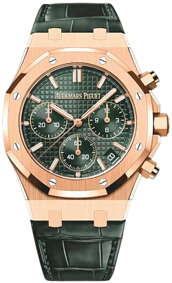 Audemars Piguet Royal Oak Chronograph 50th Anniversary Green Dial 41mm - это роскошные и стильные часы, выпущенные в честь 50-летия легендарной коллекции Royal Oak от Audemars Piguet. Эта модель сочетает в себе элегантность и функциональность, представляя собой идеальное сочетание традиционного дизайна и современных технологий. Часы имеют корпус из розового золота диаметром 41 мм, что придает им роскошный и изысканный вид. Уникальный дизайн корпуса с восьмигранными винтами на Lunette octogonale, характерный для Royal Oak, делает эту модель неповторимой и узнаваемой. Циферблат в насыщенном зеленом цвете солнечного оттенка украшен гильошированным узором "Grande Tapisserie", который придает часам элегантность и стиль. Механизм часов - автоматический хронограф, обеспечивающий точность и надежность хода. Сапфировое стекло на циферблате обладает высокой прочностью и защищает от царапин. Часы также имеют водонепроницаемость до 50 метров, что делает их подходящими для повседневного использования. Ремешок из кожи крокодила дополняет образ часов, придавая им роскошный и изысканный вид. Audemars Piguet Royal Oak Chronograph 50th Anniversary Green Dial 41mm - это идеальный выбор для ценителей высокого часового искусства, стильных аксессуаров и уникального дизайна. Эти часы будут прекрасным дополнением к вашему образу, подчеркивая ваш безупречный вкус и роскошный стиль.