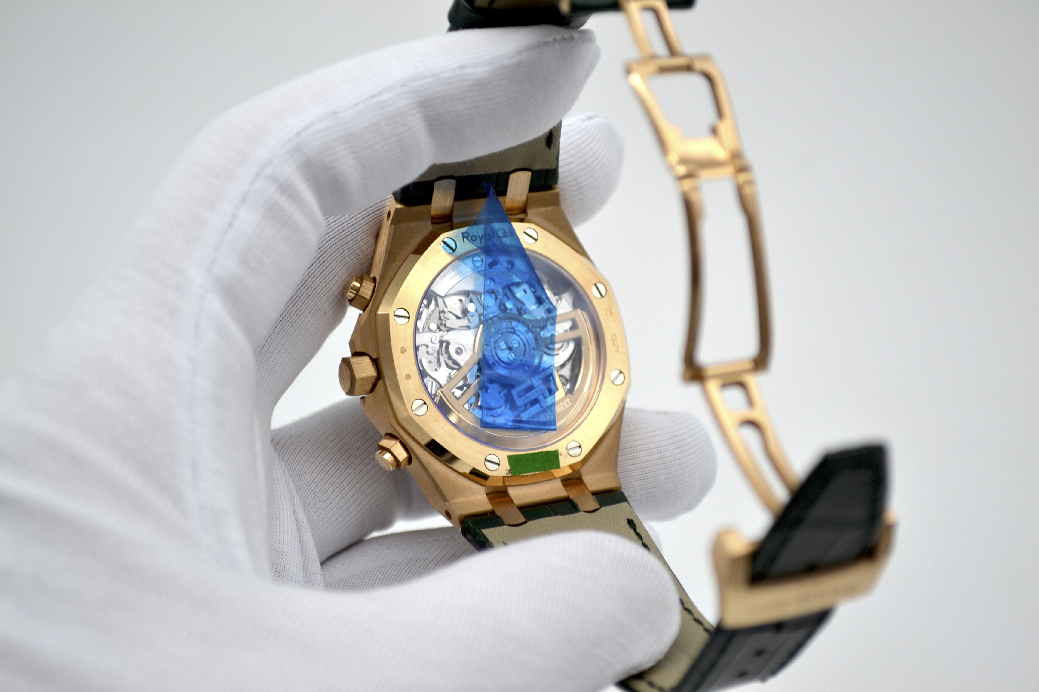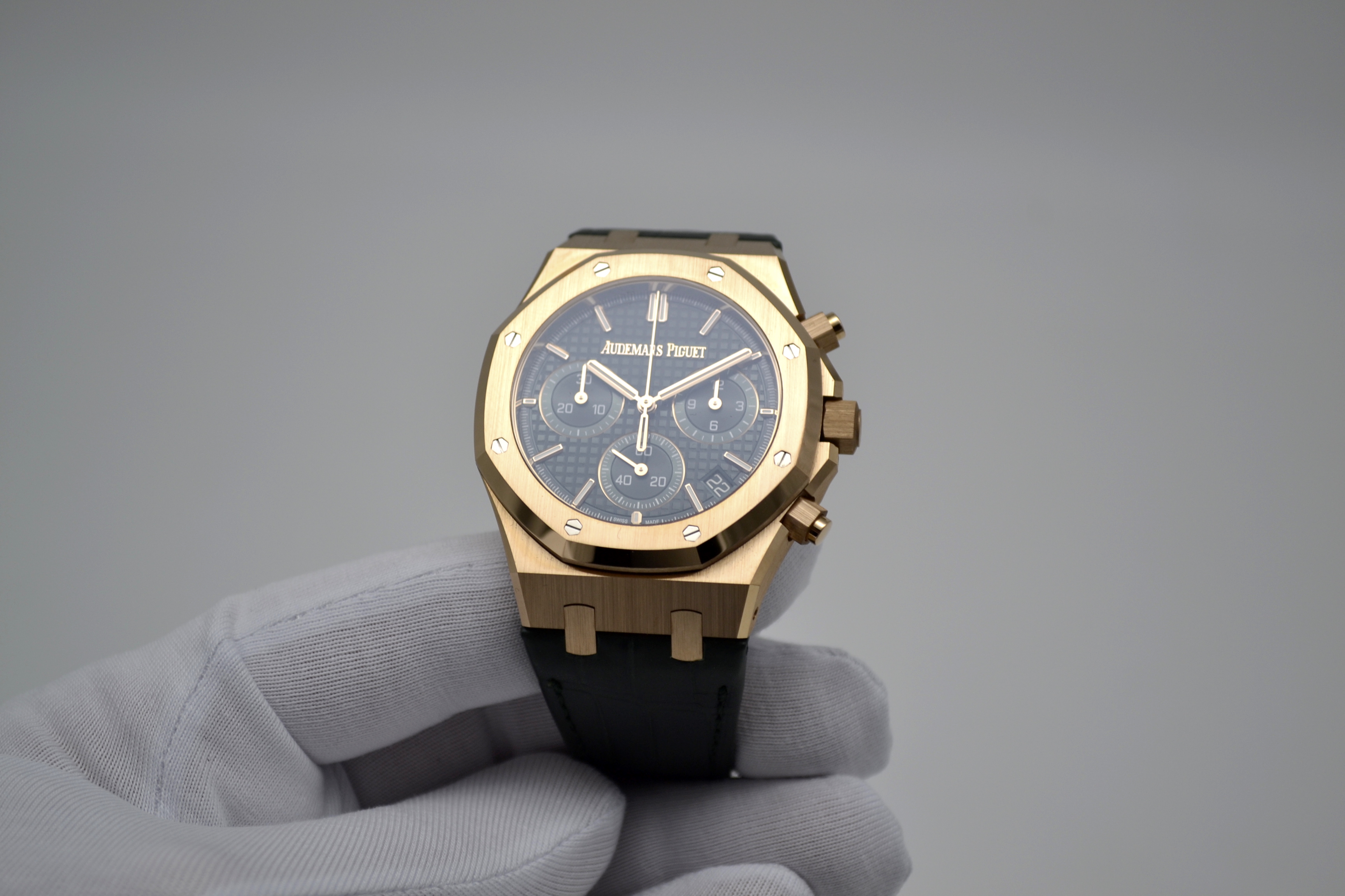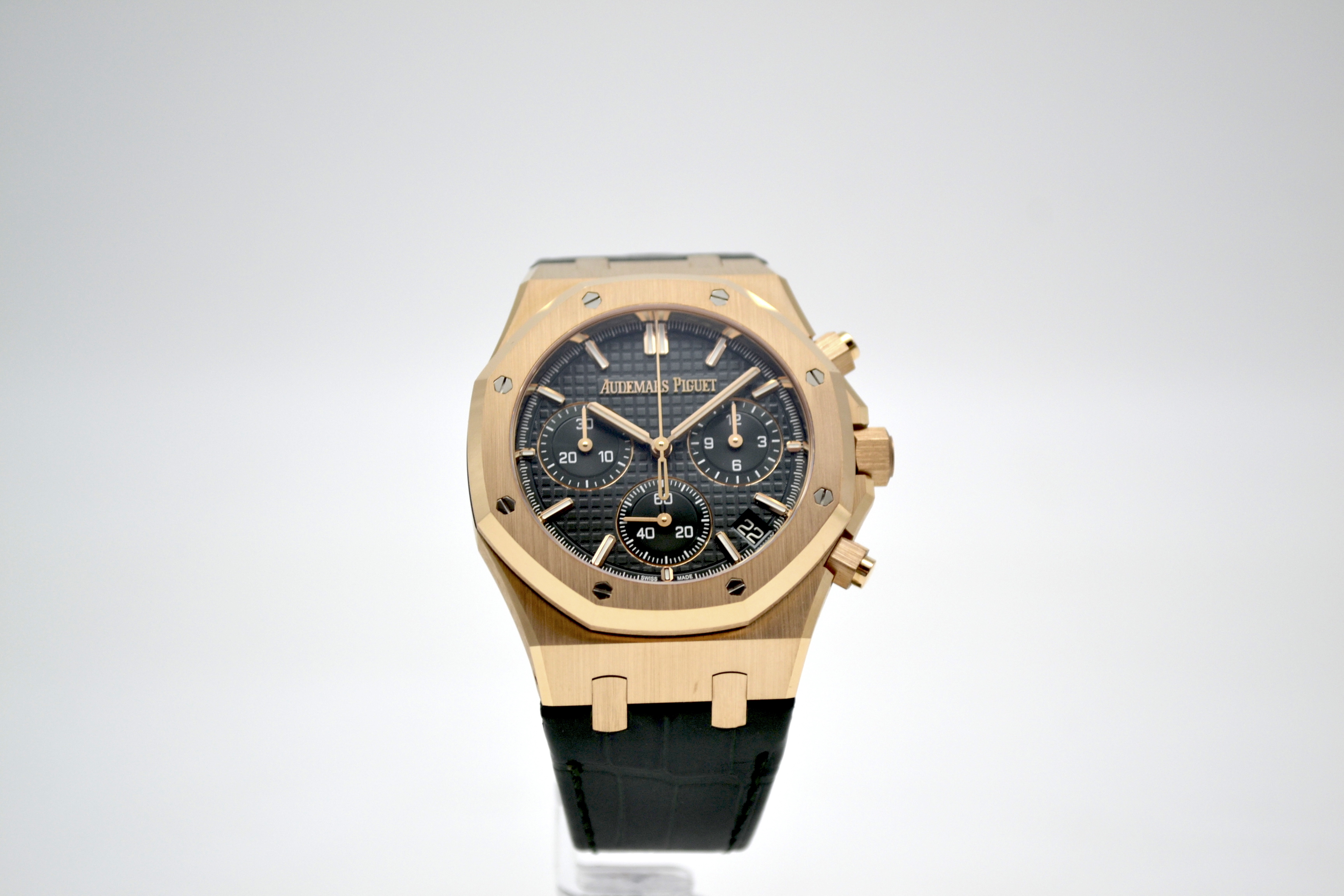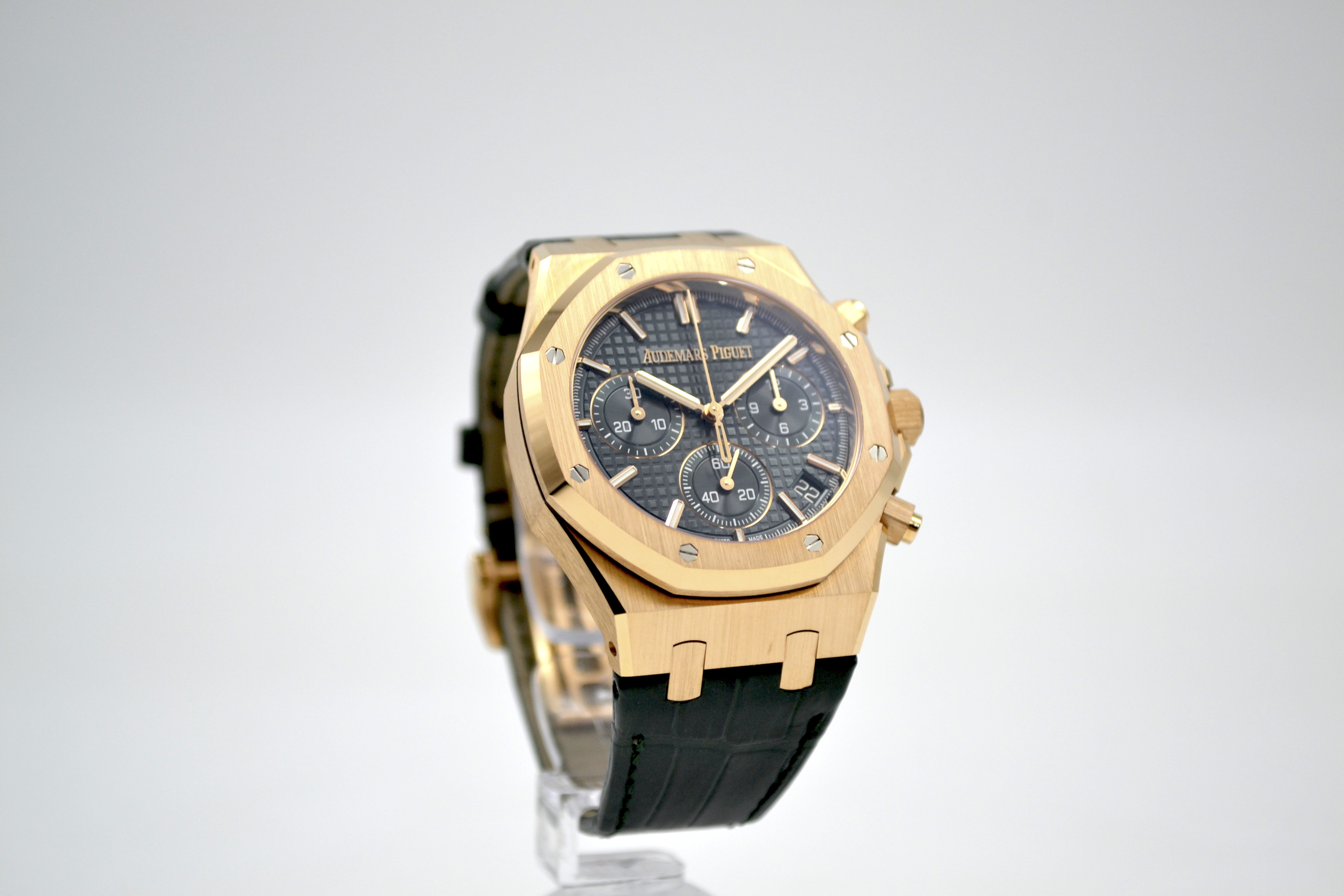 Audemars Piguet Royal Oak Chronograph 50th Anniversary Green Dial 41mm - это роскошные и стильные часы, выпущенные в честь 50-летия легендарной коллекции Royal Oak от Audemars Piguet. Эта модель сочетает в себе элегантность и функциональность, представляя собой идеальное сочетание традиционного дизайна и современных технологий. Часы имеют корпус из розового золота диаметром 41 мм, что придает им роскошный и изысканный вид. Уникальный дизайн корпуса с восьмигранными винтами на Lunette octogonale, характерный для Royal Oak, делает эту модель неповторимой и узнаваемой. Циферблат в насыщенном зеленом цвете солнечного оттенка украшен гильошированным узором "Grande Tapisserie", который придает часам элегантность и стиль. Механизм часов - автоматический хронограф, обеспечивающий точность и надежность хода. Сапфировое стекло на циферблате обладает высокой прочностью и защищает от царапин. Часы также имеют водонепроницаемость до 50 метров, что делает их подходящими для повседневного использования. Ремешок из кожи крокодила дополняет образ часов, придавая им роскошный и изысканный вид. Audemars Piguet Royal Oak Chronograph 50th Anniversary Green Dial 41mm - это идеальный выбор для ценителей высокого часового искусства, стильных аксессуаров и уникального дизайна. Эти часы будут прекрасным дополнением к вашему образу, подчеркивая ваш безупречный вкус и роскошный стиль.